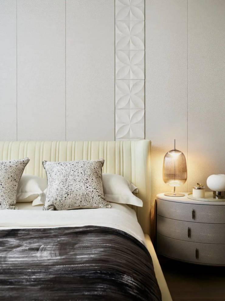 底部以石材和金属结合的曲线异形巨柱抬高建筑体量,构筑了廊柱与动态景观空间,既满足了尊贵的入户大堂需求,又释放了底层空间的潜力,进一步提升了低层住宅的采光效果和视野范围,从而营造出更为宜人的居住环境。