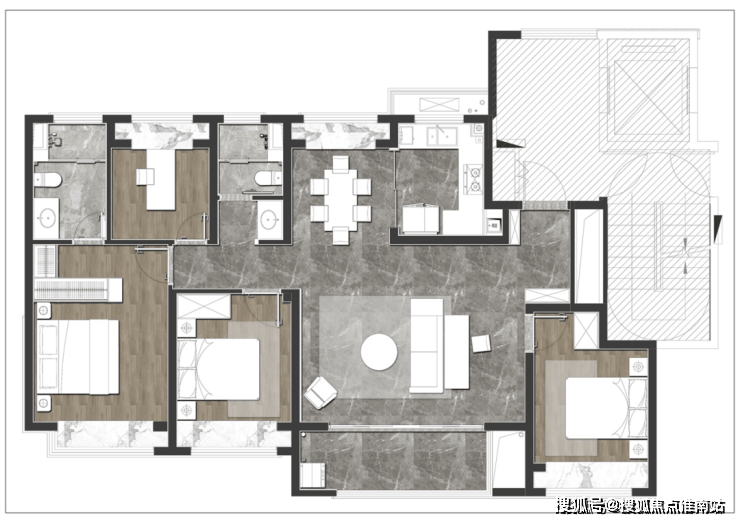 对于二人情侣,是安放衣物与家庭办公的温馨空间,衣帽间、书房、学习,充分满足二人生活的多元生活。面对三口之家,可以从婴儿房进阶为儿童房,伴随年龄结构的变化,而不断调整自己的定位。