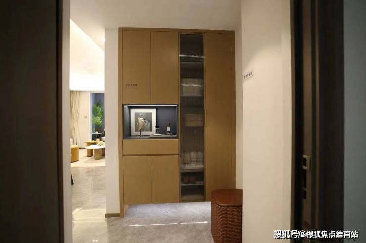 入户即是独立玄关,大尺度U型厨房,三开间朝南的全飞机户型设计,几乎没有多余的面积浪费。