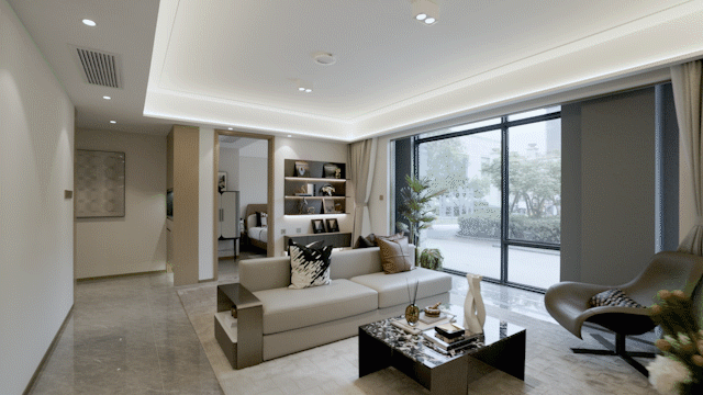 2、约5.7米宽厅,功能分区明确,生活动线井然有序。格局上实现了真正的全明空间与南北通透,生活空间张弛有度。