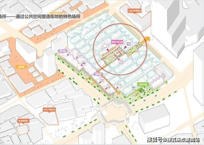 内部有文学公馆、餐饮,商业配套嵌入文创、书店、咖啡等场景,以及地下会所。