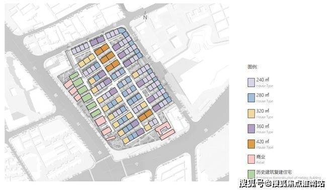 另外,从组团上看,分为历史保护组团、内部组团、沿街组团: