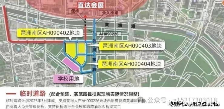 一是临时道路,会搭设黄埔涌便桥,连接琶洲中区,计划2025年约一季度建成;