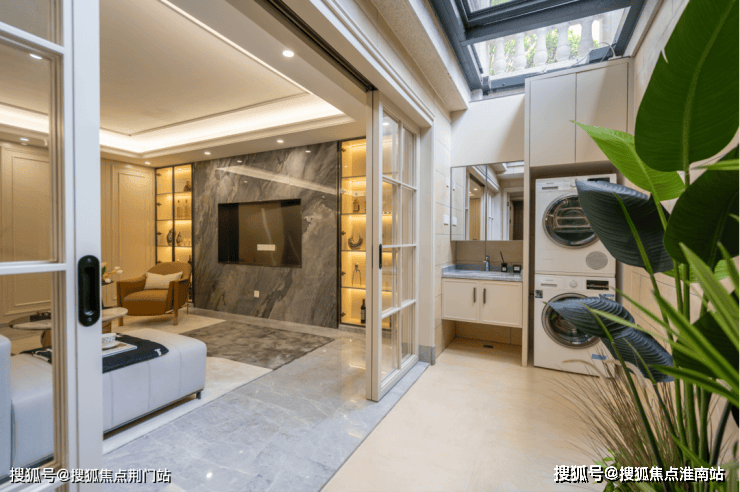 除了庭院,还有私享地下空间,大面的采光井带来明亮的视觉感受,可以在这里看个电影,或和朋友品茗畅谈。哪怕下雨,呆在这样的空间内也会感受到满满的安全感。