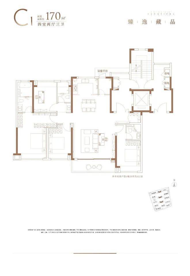 建面约170㎡4户型终极改善户型,适合各类家庭居住!三套房设计,居住舒适度、隐私性非常高!边套户型更是将南向主卧升级成约270°转角飘窗设计,采光视野及美观性都得到了极大提升。