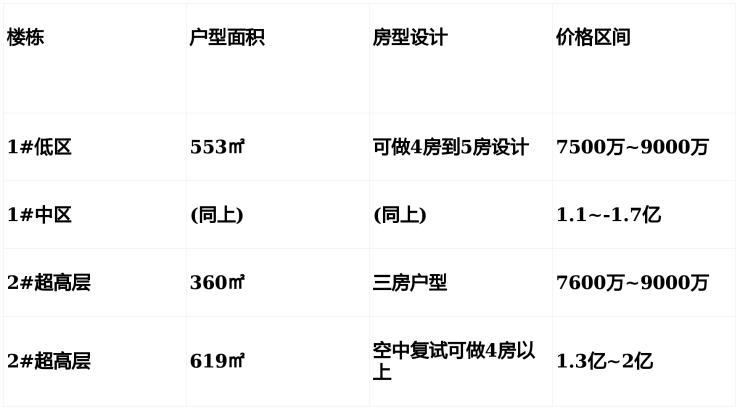 住宅部分全部为大平层(复式)设计,单套面积约370-1500㎡,全部精装交付。装修采用高端材料和设备,注重细节和品质,打造舒适、豪华的居住空间。