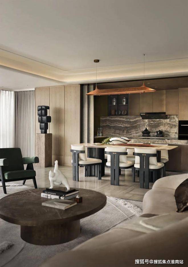 天然石材、木材与黄铜调和出空间醇厚质朴、温润坚定的雅奢调性,亲切而放松。