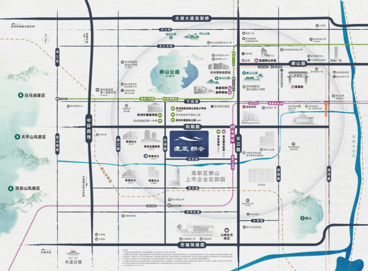 建发朗云售楼处地址位置:苏州市高新区向阳路与汾湖路交汇处(苏州外国语学校南侧约300米)