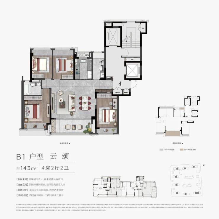 再来看看约143平四房两厅两卫,可以说是125平的进阶款,尺度功能直接上升了一个level,同样在此次开盘中备受宠爱。