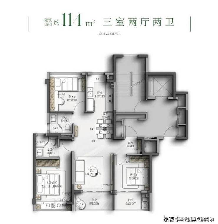 4、114户型打造了南向双阳台,增强了空间的功能和使用性,打通之后形成超级阳台,放大生活的尺度。