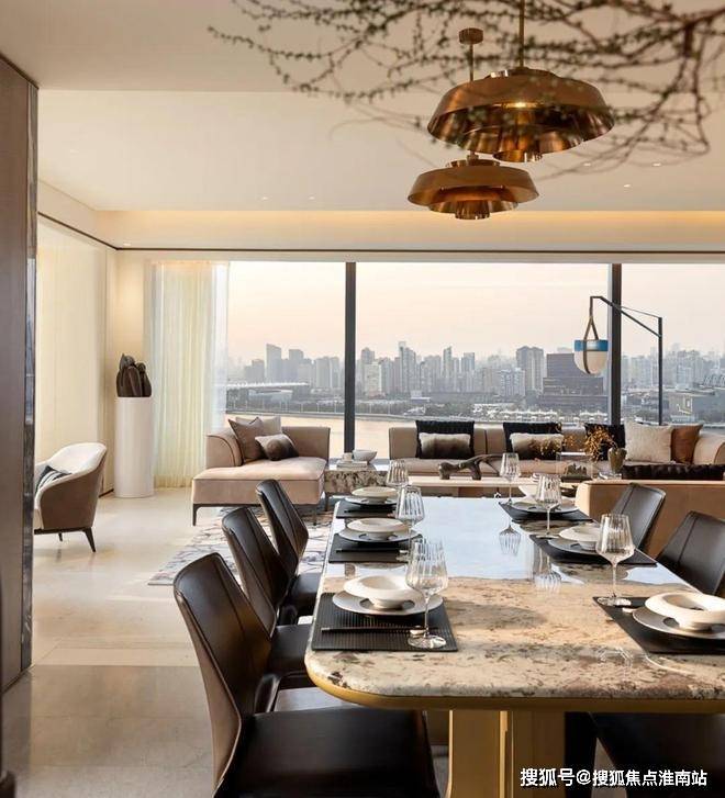 客餐厨顺势衔接、浑然一体,无一丝多余设计,美好生活的理想画卷徐徐展开。窗外高楼林立映江景,涛声阵阵入庭来,在这天然背景中,我们化身生活的主宰,肆意挥洒灵动笔触,为日常添彩。