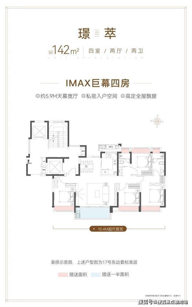 这套建面约142㎡的四房,堪称人生进阶之作。即使是三代同堂,尺度感也是丝毫不虚。