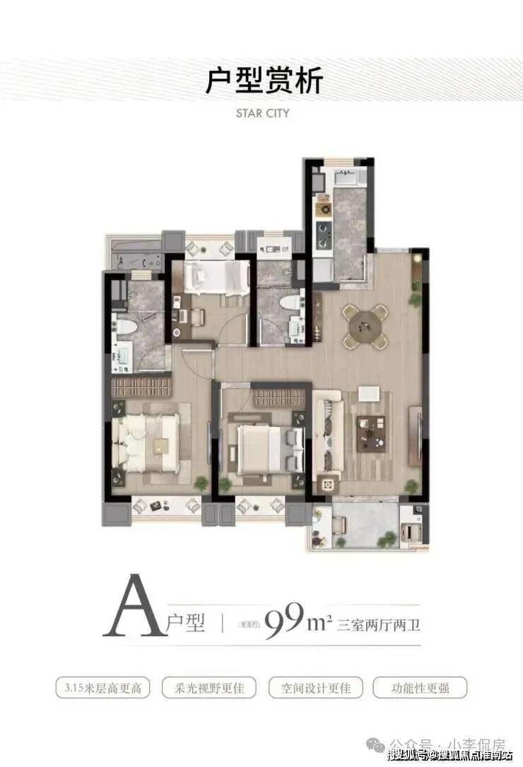 ·约89㎡户型:大虹桥范围不到90㎡的户型大部分都只做到2房,灿耀星城该面积段实现3房功能性,让自住客户一步到位,也让该产品进入二手市场后具备降维打击的优势!
