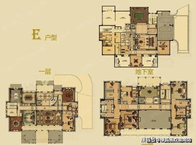 E户型】法国古堡风格,1397.2 ㎡(地下室509.05 ㎡),源自法国十六世纪古城堡,将早期哥特风格及文艺复兴装饰技术融于一体。君庭法国古堡风格,纯正法式古典贵族官邸。掩映开阔绿地之中,如同世外桃源。建筑虚实搭配相宜,细节变化极富壮丽。独树一帜,尽显皇室风范,更具典藏价值。