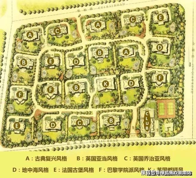 不同风格的建筑交叉分布于整个社区,绝大多数别墅的四周都至少有三种不同风格的建筑,四下望去,满眼尽是是不同的欧式风情。