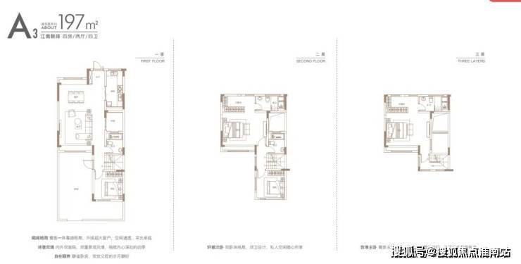 A地块的容积率最低,只有1.35,共有71套房源,由13套别墅和58套洋房组成,联排面积为196平,有独立的入户花园和地下附赠空间。洋房面积约97-198㎡。