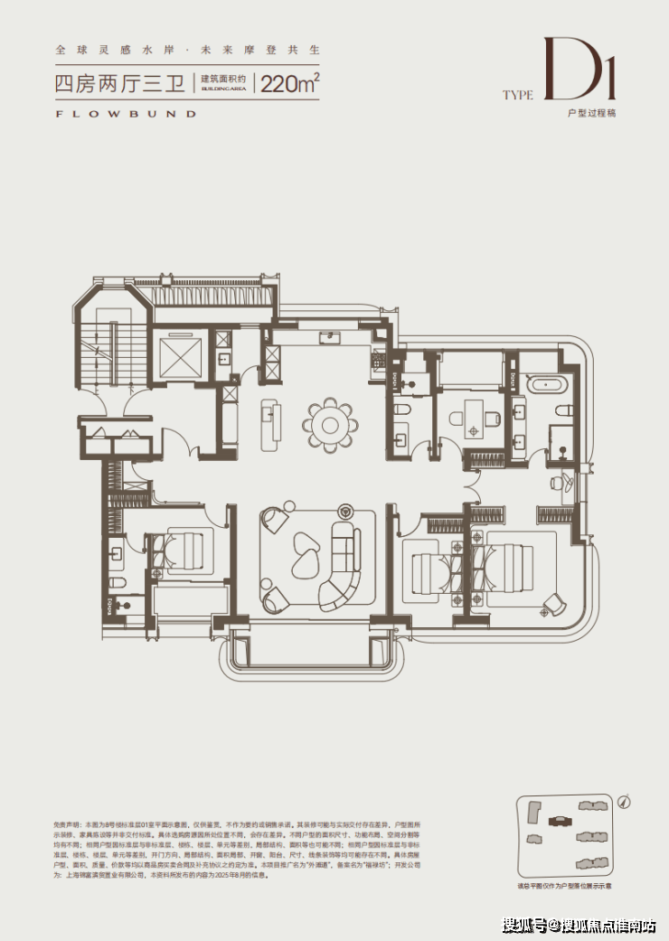 项目主力推出建面约100-220㎡的三至四房产品,覆盖刚改、终极改善及高端圈层需求: