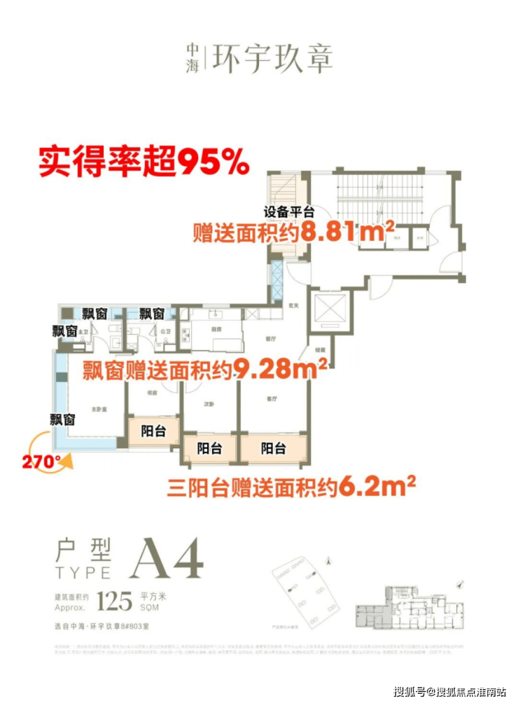 ①、实得率超95%,三阳台+罕见设备平台附赠+全屋飘窗,实用面积堪比常规145户型。