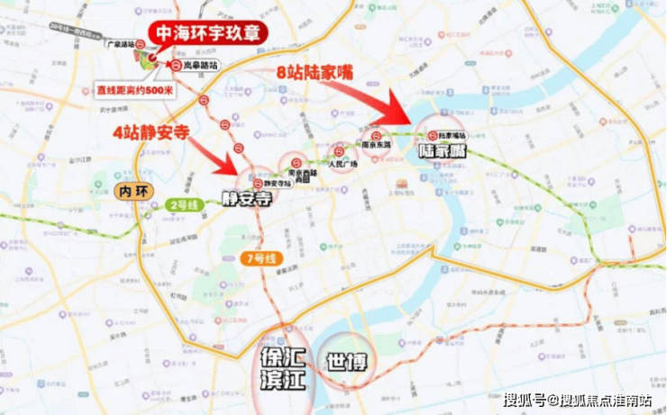 环宇玖章直线距离20号线广泉路站(在建)约400米,距7号线岚皋路站约500米,4站静安寺、5站南京西路,通勤便捷度远超同价位区域。