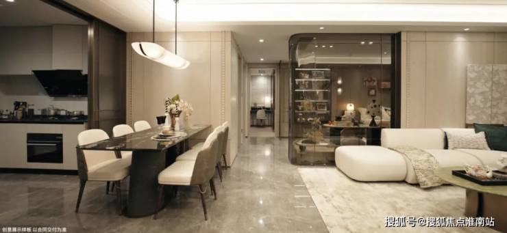 类一梯一户设计私域电梯厅,是豪宅市场方能一见的专属礼遇;餐厨客厅阳台一体化,呈献视线时时相交的家庭聚场。