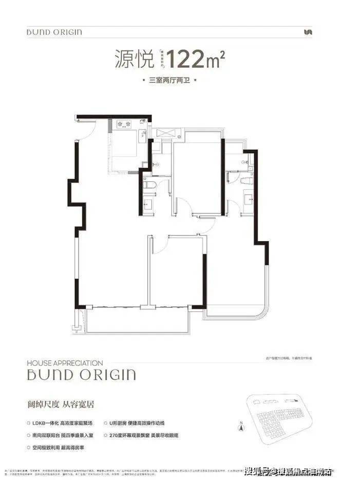 A户型是4房2厅2卫格局,三开间朝南+LDKB一体化+全卧室带飘窗+主卧套房设计+动静分离,居住功能性更强。