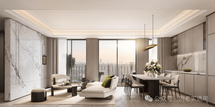 项目整个餐客厅均为 岩板 交付,岩板的尺寸达到了2.4米*1.2米,这是市面上非常罕见的大板配置,即便是市区豪宅,用的大尺寸也不过是1.8米!