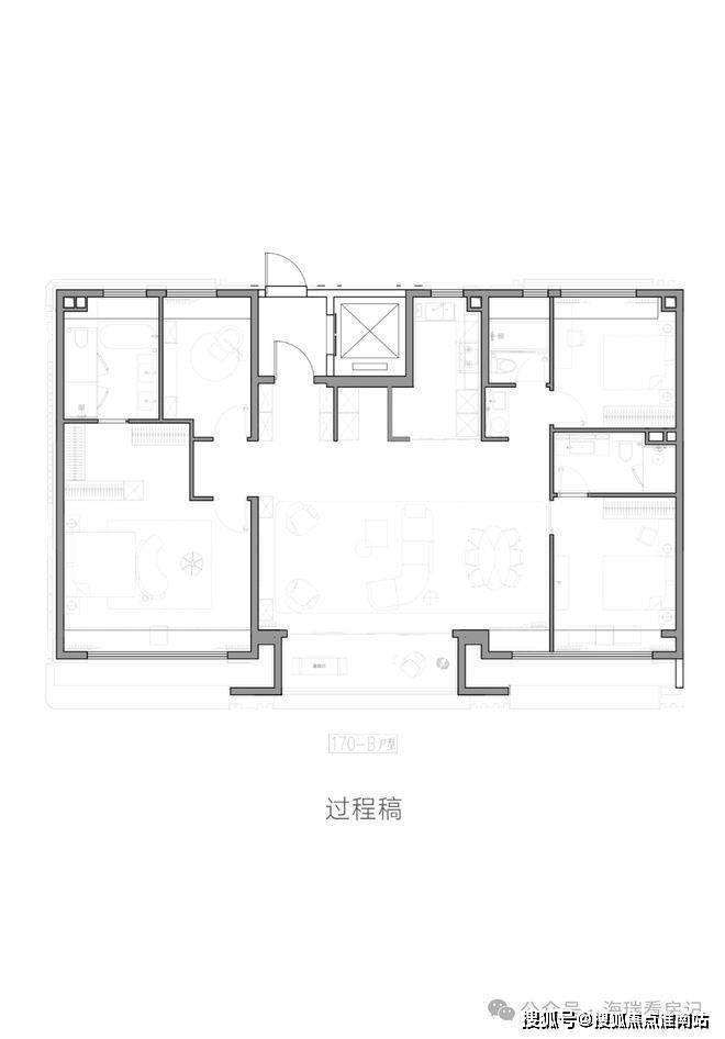 建面约170㎡户型:五面宽设计,南向总面宽约17.2米,餐客厅面宽约8.2米。主卧面宽约5.4米,尊崇独立衣帽间,空间阔绰可分男女。三个套房。独立八百库收纳、卫浴收纳拉满。