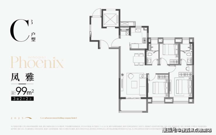 · 建面约99㎡户型则进阶3房2卫,适配对品质有需求的首置或首改客户!