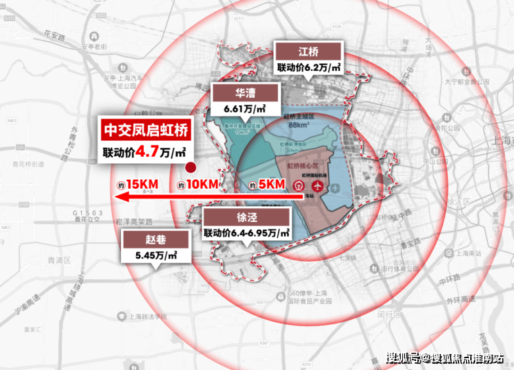 而中交凤启虹桥,距离虹桥主城区直线仅约2.8公里.