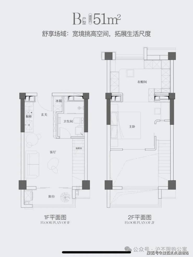 面积51平 4.5米层高 2房带阳台