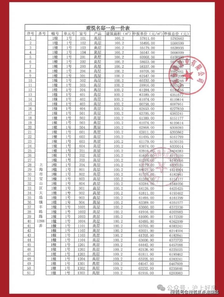 项目一房一价表▼