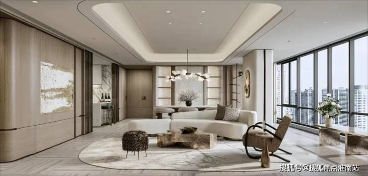 项目的中叠 四开间朝南,超大IMAX的采光面,妥妥市区豪宅大平层的尺度感。