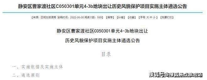 2022年6月,静安区人民政府官宣了曹家渡社区C050301单元4-3b地块的出让公告。