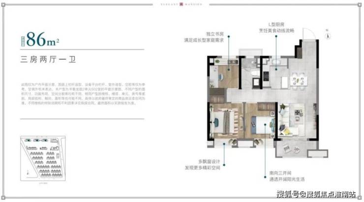 南北通透格局方正,动静分区,三开间朝南,所有卧室均带飘窗,在无形中扩大空间尺度,让阳光和景观全面渗透。植入LDK一体化理念,开放式厨房,打破界限思维,有效利用空间,增加生活的互动性。