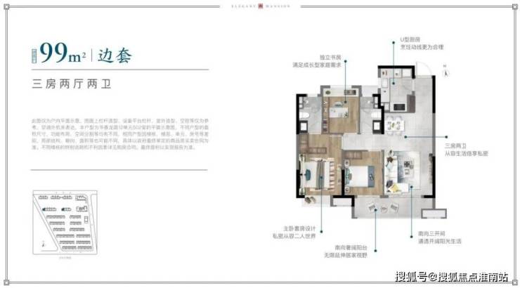 三开间朝南,阳台面宽可达约5.3米,横跨客厅和南向次卧,大幅度增加南向采光面。来客、家务、居住动线合理布局,互不干扰。双明卫设计,保证生活品质与独立私密。主卧套房,配置独卫、衣帽间,打造面面俱到的寝居空间。