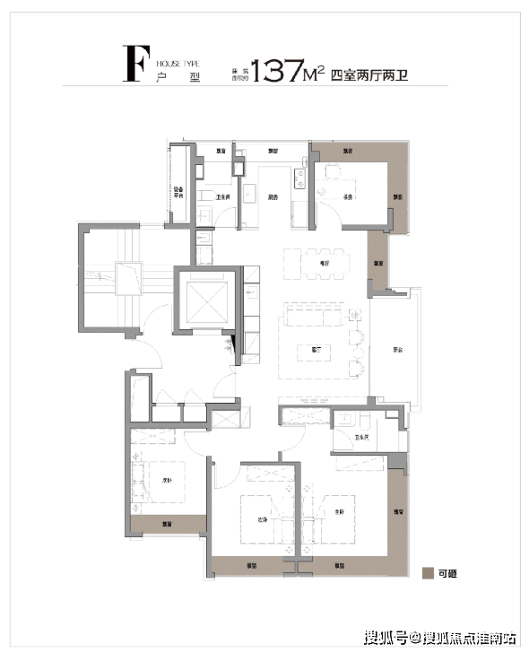 超高得房率户型,飘窗可砸,100㎡A户型,砸完多出约6㎡;137㎡F户型,砸完多出约11㎡,附赠多出来的空间,未来可随家庭需求,灵活延伸。