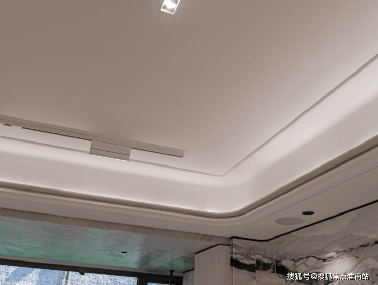除此之外,在细节方面,项目也是不遗余力:比如,全屋智能也同样是交付标准,大量场景预设,让科技改变生活,值得一提的是,这一次项目更是设置了多个智能吸顶音响: