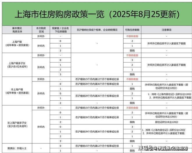 非沪籍居民家庭/单身人士:社保/个税满1年可在外环外不限购;满3年可在外环内限购1套