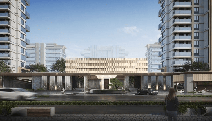 🎗️奢仪超阔门堂约500㎡社区门庭,双瀑环抱——聚财守护之意,尊享大气归家礼序
