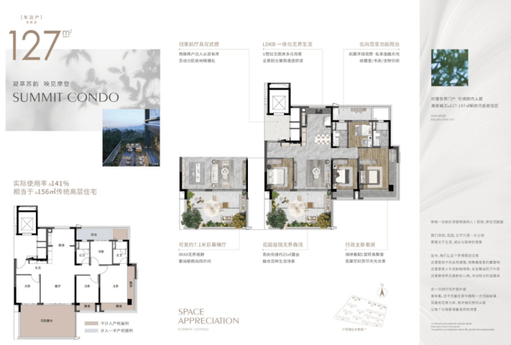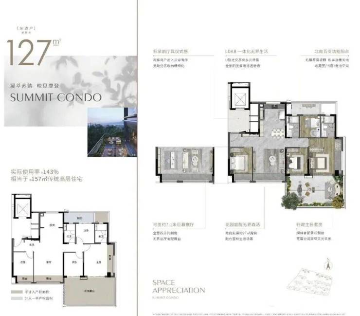 🥇建面约143㎡:欢聚无界约29㎡花园露台实际使用面积相当于传统住宅185㎡传统高层住宅