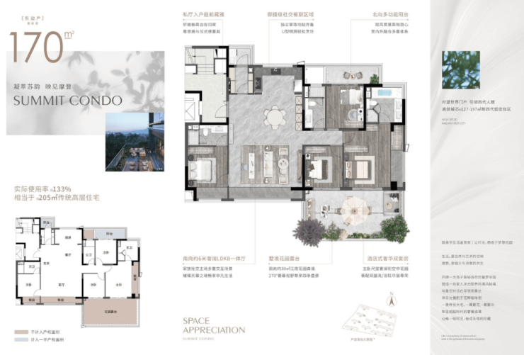 🥇建面约170㎡:270度顶奢套房设计实际使用面积相当于传统住宅205㎡传统高层住宅