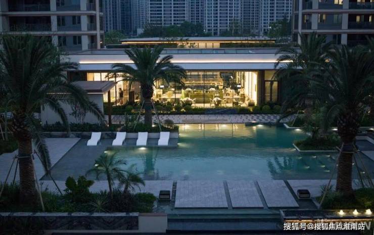 与摩登水院相连的是定制级热带景观泳池,援引度假酒店设计理念,泳池旁选种6棵“热带贵族”加拿利海枣树,并用肾蕨、大吴风草等热带植物加以渲染,一年四季流转出不同的风景,打造出独特的热带风情。