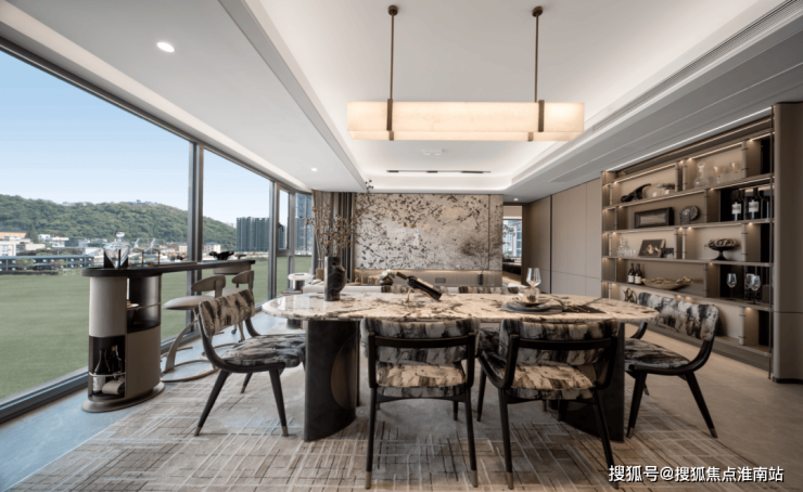 在产品力内卷到白热化的杭州,棠前明月卯足了力气,秉承只定制不复制的初心,从建筑立面,到公区,再到室内,将改善级产品的“豪宅图腾”集于一身:鎏金线条勾勒奢雅摩登的银色铝板,搭配大面积曲面玻璃,打造一体成型的超流体建筑立面,边套奢享IMAX弧形景观窗,带来约270度天幕视野。