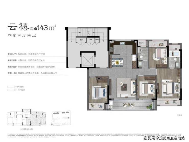 建面约143㎡4房2厅2卫,是小区极为抢手的宝藏洋房户型。
