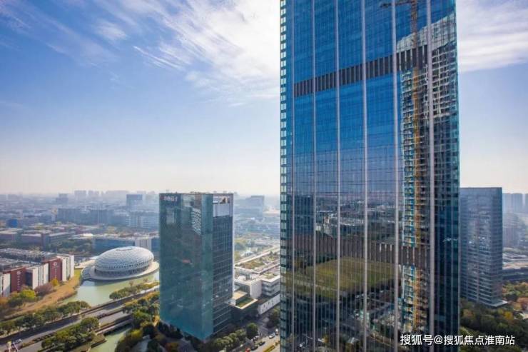 「外立面设计」——整个外立面采用全玻璃幕墙打造,光幕质感无垠一线湖景,将建筑美学和建筑功能有机结合在一起,高端大气。