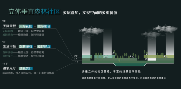 更颠覆性创新的是,它将自然向上延伸,构建出一套前所未有的立体社区: