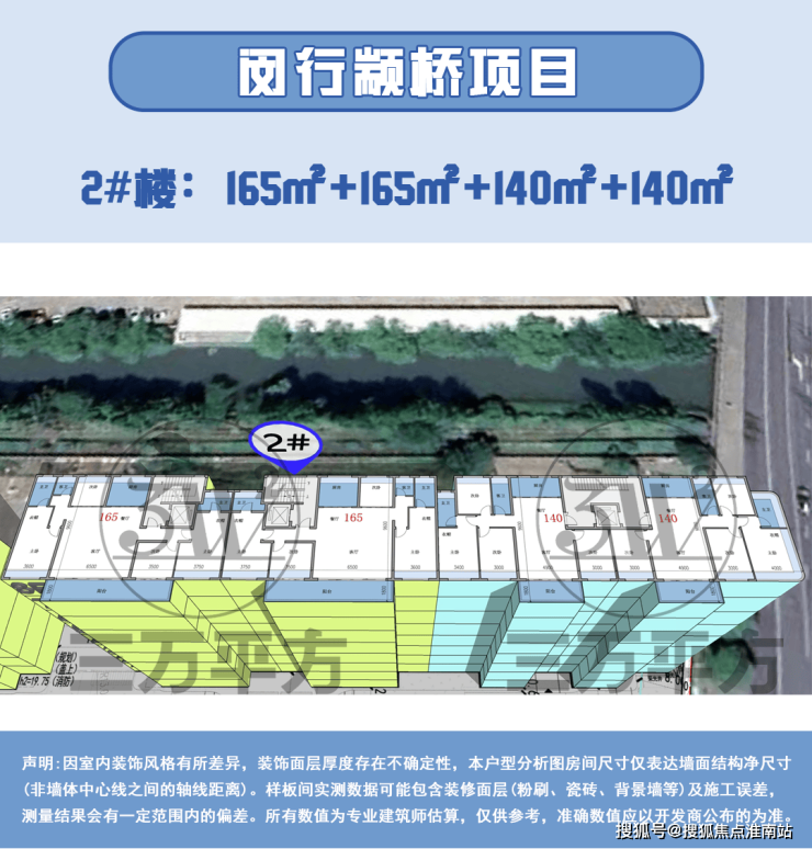 1#2#为8层洋房,面积段140-165;预测7-8层会做少量顶复豪宅,预测面积段在200-280;3#~6#为叠拼和联排户型,下叠面积段预估160-180,上叠150-160上下;3层联排总共6户,面积段在240左右。