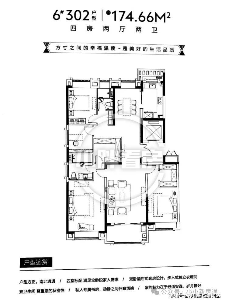 与前两期一样,古北金鹰府四期同样是小而精的社区,整个小区仅2栋总高13层小高层,主力户型约150-174㎡3-4房。1、2楼为非标户型,各8套。