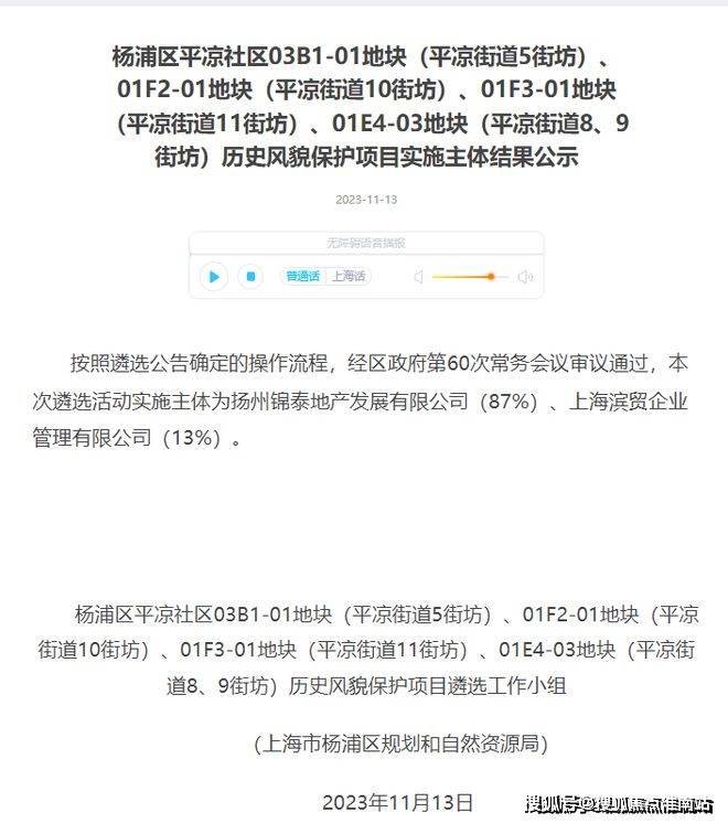 外滩道售楼处电话:400-8818-994(官方售楼处电话)外滩道售楼处电话:400-881-8994(售楼处最新电话)上海外滩道官方电话:400-8818-994✔(官方售楼处预约看房热线)2023年12月,中信泰富(87%)联合杨浦国资(13%)通过协议出让,以总价1143905万元,楼面价63127元/m²竞得4宗打包地块: