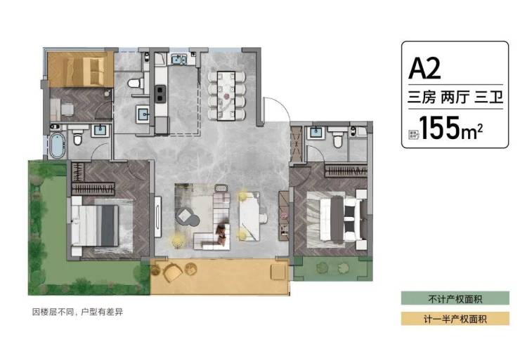如此高的使用率自然在房间数量设计上游刃有余。南向阳光房让四季风景成为家的延伸,北向多功能空间可打造梦幻儿童房/茶室/书房等,奢雅主卧套房配备独立卫浴系统,兼具私密性与舒适性。四时起居,在一方独立天地里静享生活的品质与典雅。